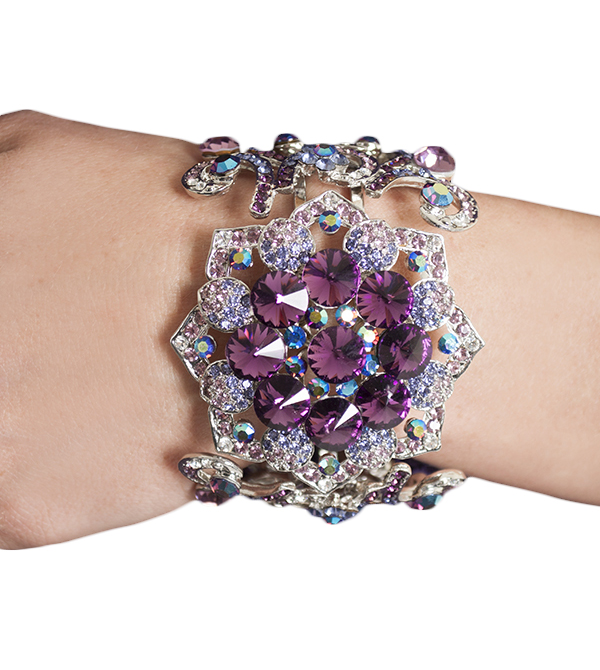 Western Fashion 40324-SIL-LLC Large Flower Rhinestone Bangle, Silver & Lilac