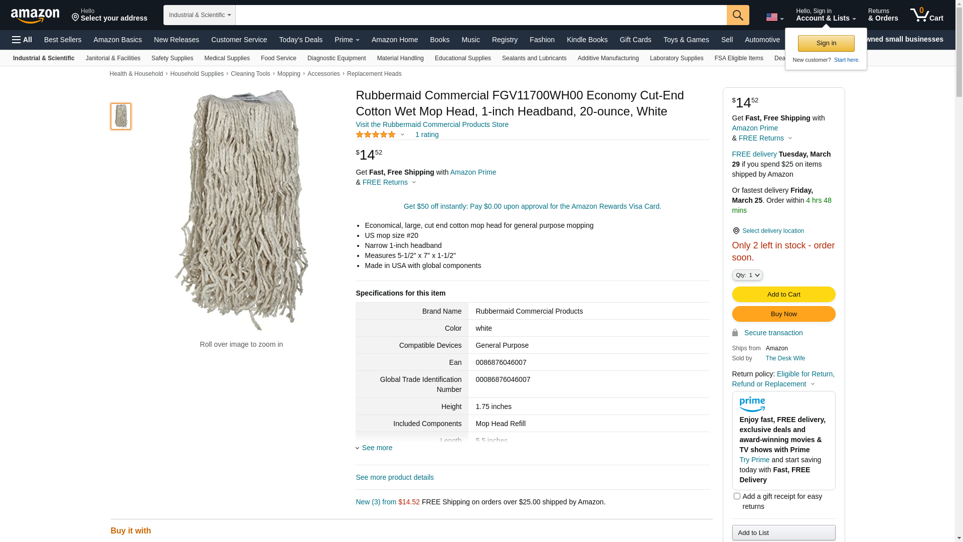 | Feature | Economical, large, cut end cotton mop head for general purpose mopping |