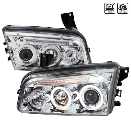 Spec-D Chrome Halo LED Projector Headlights Dodge Charger 2005-2010 | LHP-CHG05-TM