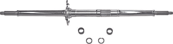 Durablue offers their limited lifetime warranty with the Eliminator axle.<br>Fits:<br>ARCTIC CAT<br>DVX400 04-08<br>KAWASAKI<br>KFX400 03-06<br>SUZUKI<br>LTZ400 03-08 Durablue Eliminator is the worlds #1 axle due to the strength, durability, and style for aggressive ATV riding. Durable Eliminator Axles are heat treated using a proprietary method, providing excellent strength and durability. Once heat treated, the Eliminator axles are polished and chrome plated to give them looks that are equal to their superior strength. Wheel base and offset may be adjusted 2” with the Durablue Eliminator Axles simply by swapping spine spacer locations to fit your riding style and conditions. Many of the Eliminator Axles come with the patented Posi-lock system which removes threaded sections from the flexing area of the shaft reducing a major source of cracking.