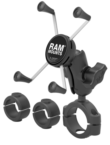 RAM Mount RAM Torque 1 1/8" - 1 1/2" Diameter Handlebar/Rail Base with 1" Ball, Medium Arm and X-Grip for Larger Phones [RAM-B-408-112-15-UN10U] | Essenbay Marine