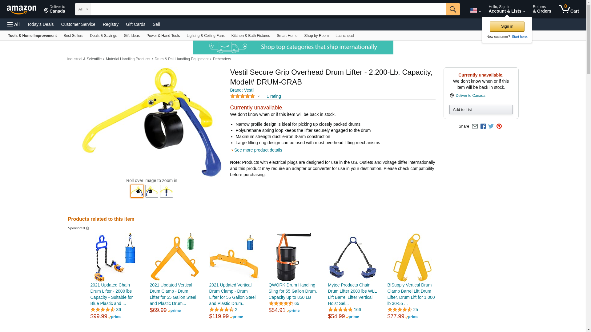 | VESTIL-DRUM-GRAB | 1 | This item ships directly from Vestil | 1 | 1 @ $410.99 | |