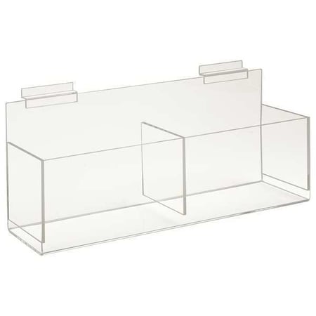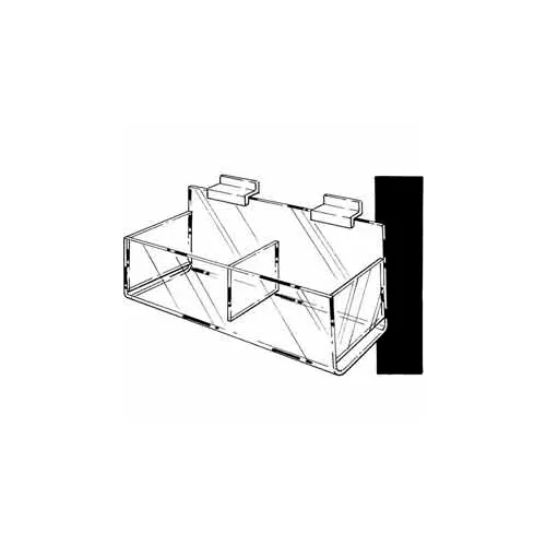 These Slatwall Bins are square to provide organization of your product display. The containers are 16? x 7? (L X D). These Slatwall Bins have side by side double compartments for double the space and appeal for your presentation. The compartments are made of a solid, smooth acrylic to prevent tarnish, spots or scars. These Slatwall Bins are crystal clear for optimal visual elegance.