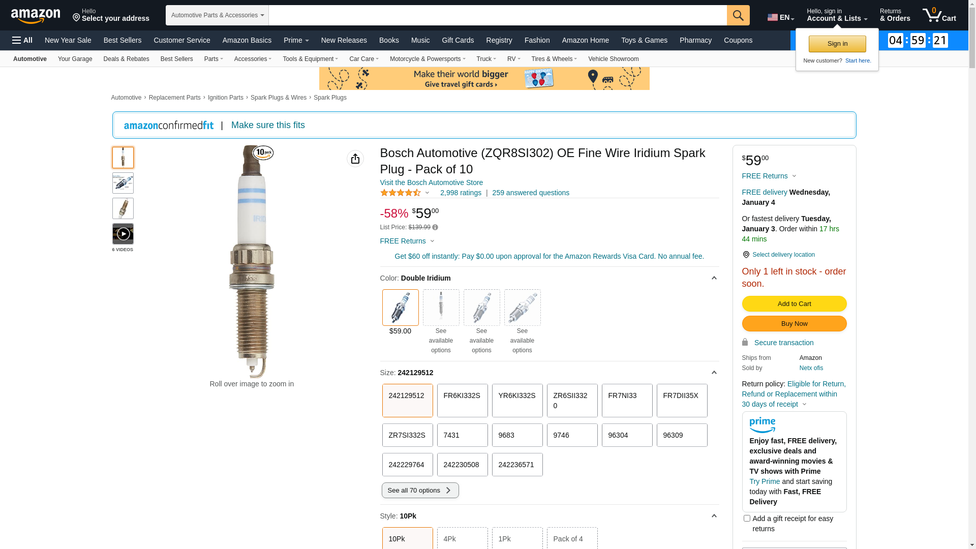 | StockWise Auto | BS-0242129512 | 1 | 1 | 1 @ $10.46 |