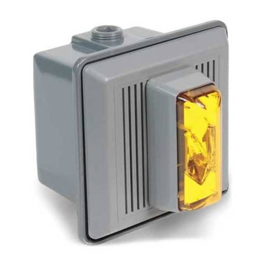 'Horn Strobe, Lens Color Amber, Voltage 120VAC, Current Drawn 148 mA, Sound Level 90dB @ 10 ft., Height 5-1/2 In., Width 5-1/2 In., Depth 5/8 In., Housing Color Gray, Housing Material Engineered Thermoplastic, Light Output 90 CP, Flashes per Minute 60, Mounting Surface, Operating Temp. 32 to 120 Degrees F, Standards UL'