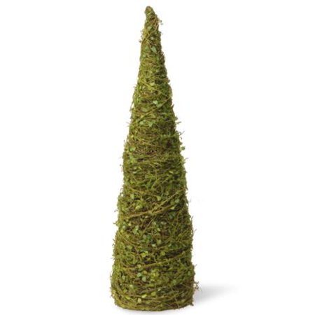 This 24 inch cone shaped tree is covered in moss is a great accent for everyday decor or a festive occasion. Crafted with plastic material to last forever in a green realistic looking finish, this tree can be set outdoors in the garden. <br /> <br /> <ul> <li>Colors/finish: Green</li> <li>Materials: Plastic</li> <li>Quantity: One (1) </li> <li>Setting: Outdoor </li> <li>Dimensions: 24 inches tall x 10 inches wide x 10 inches deep</li> <li>Covered in lush moss and vines</li> <li>Perfect for home and garden</li> </ul>