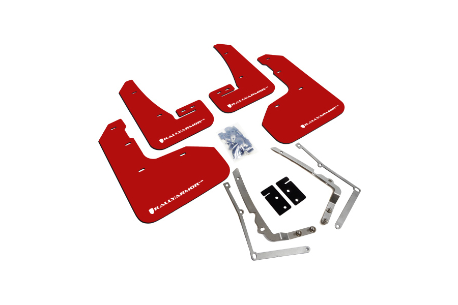 Rally Armor UR Mud Flap Set Red w/White Logo Volkswagen Golf R MK7 15-17 | MF40-UR-RD/WH