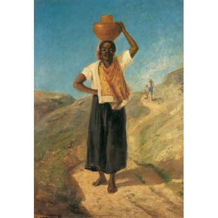 Camille Pissarro Stretched Canvas Art - Woman Carrying A Pitcher On Her Head St Thomas 1854 - Large 20 x 28 inch Wall Art Decor Size.