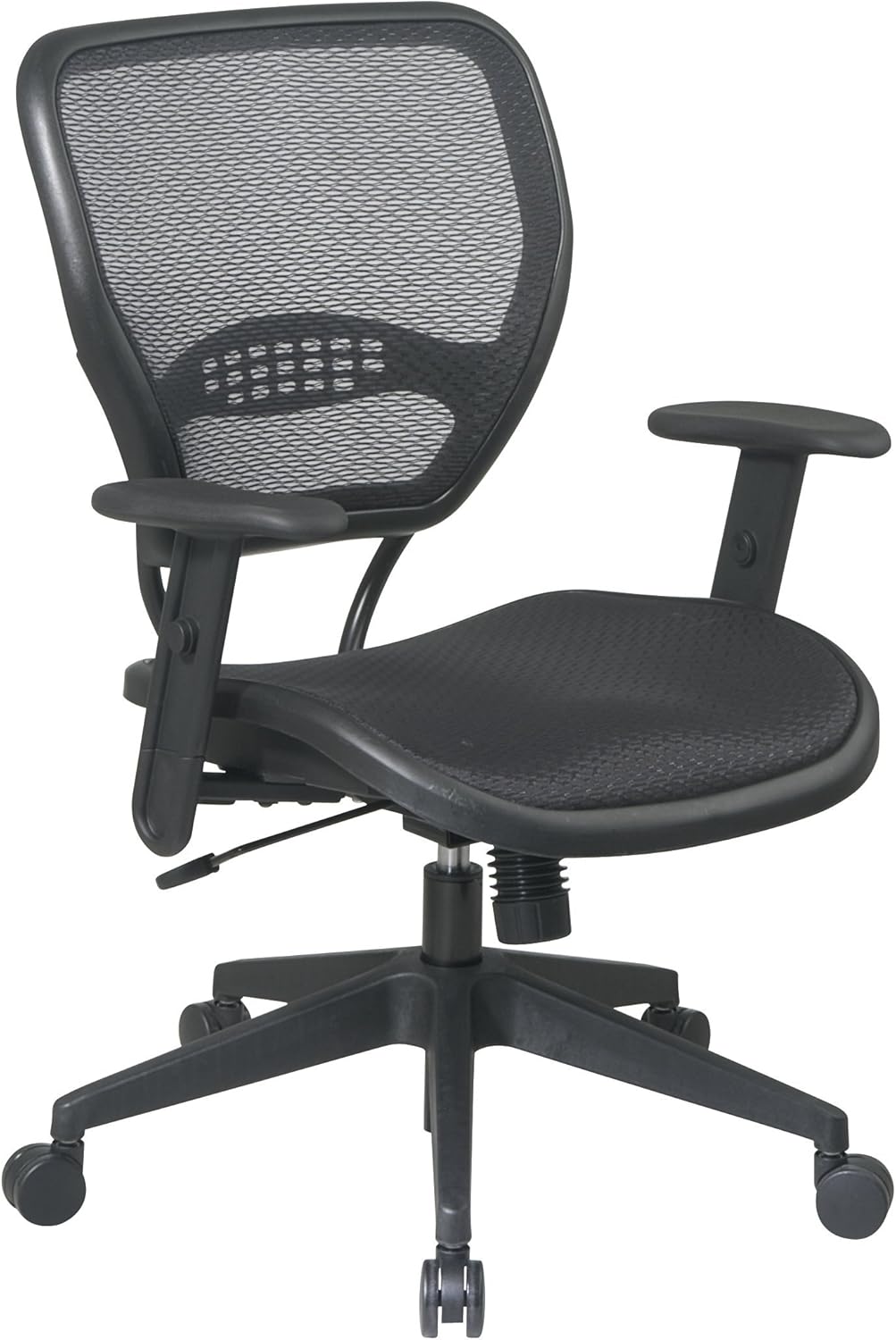This Deluxe Task Chair features a breathable Air Grid seat and back with built-in lumbar support, providing the highest level of style and functionality. With one touch pneumatic seat height adjustment and a 2-to-1 synchro tilt control, this office accent is sure to be an ideal fit in your home or business office! Shipping Method UPS Color Black Materials Air Grid/Nylon Assembly Required Yes Series 55 Series Arms With Feature Type Height 42 in. Feature Type Width 26.5 in. Feature Type Length 26.75 in. Depth 21 Material Air Grid, Nylon Assembly Yes Style Modern Finish Black