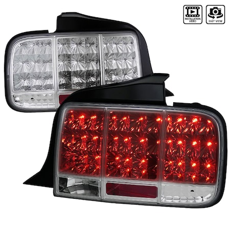 Spec-D Tuning LED Chrome Housing Clear Lens Tail Stop Light Sequential Compatible with 2005-2009 Ford Mustang Left + Right Pair Assembly