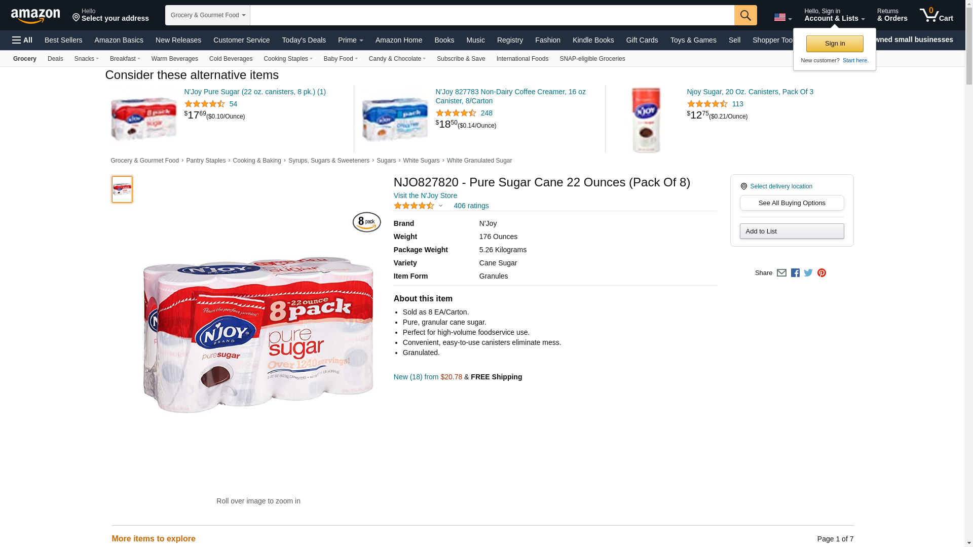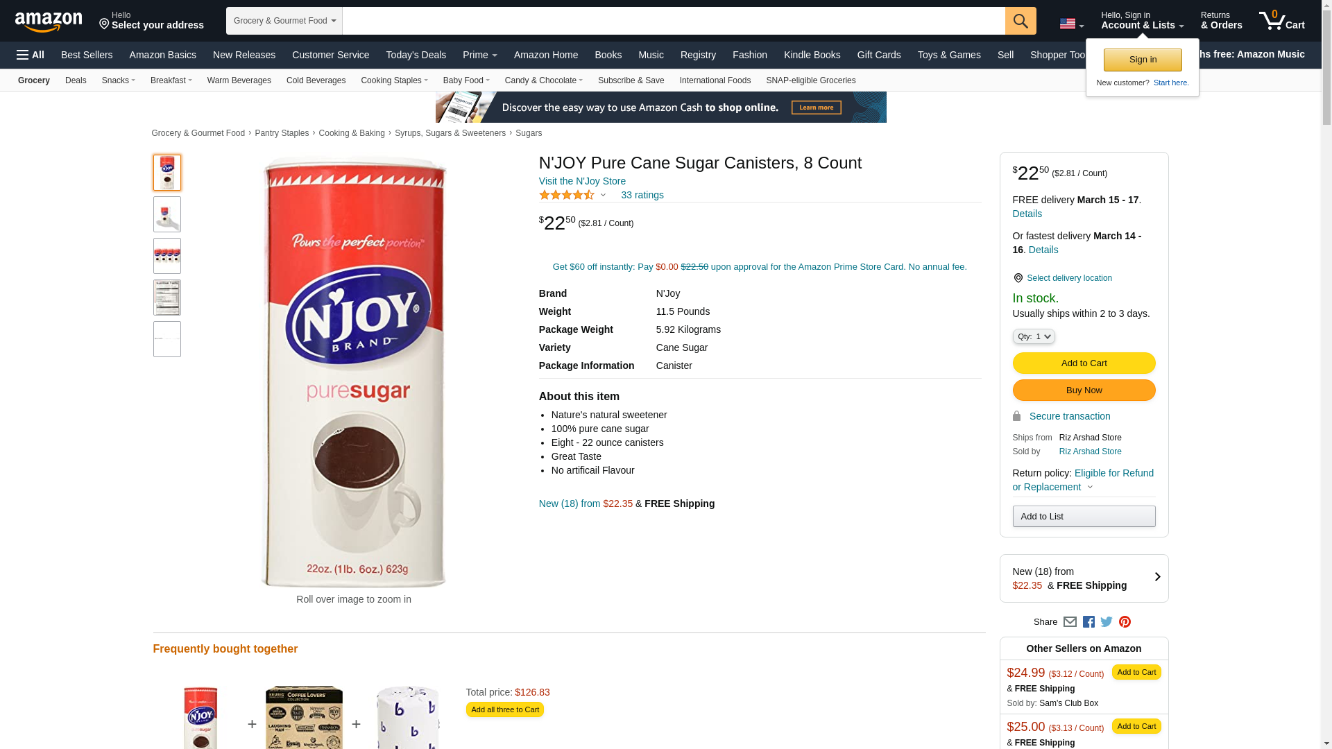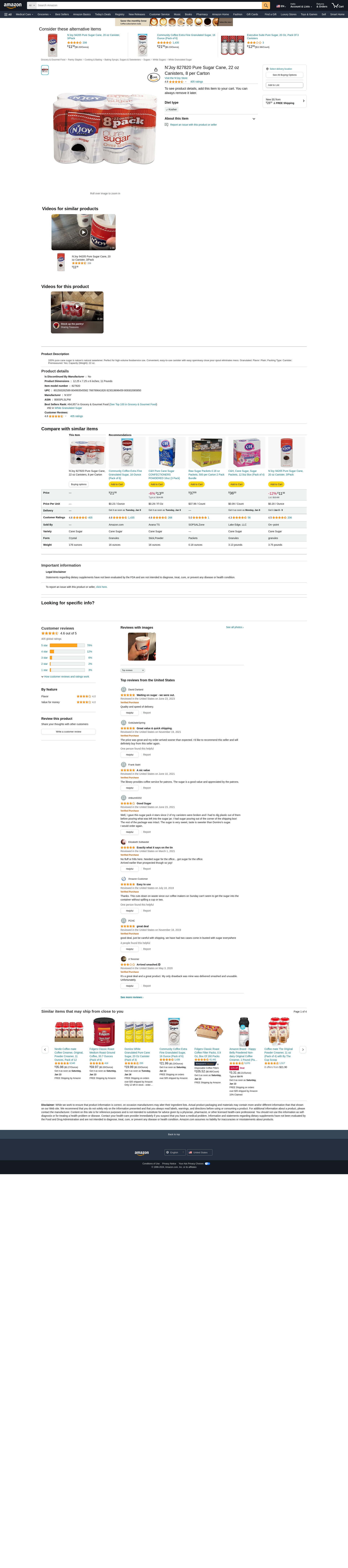 100% pure cane sugar is nature's natural sweetener. Perfect for high-volume foodservice use. Convenient, easy-to-use canister with easy open/easy close pour spout eliminates mess. Granulated. Flavor: Plain; Packing Type: Canister; Premeasured: Yes; Capacity (Weight): 22 oz.
