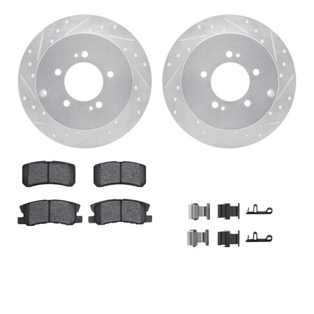 Rear - Dynamic Friction Company Brake Rotors - Drill/Slot - Silver with Ceramic Brake Pads and Hardware Kit 7312-72075