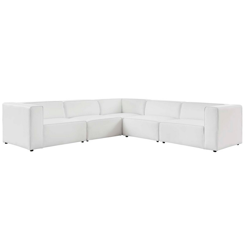Modway Mingle Vegan Leather 5-Piece Sectional Sofa, White