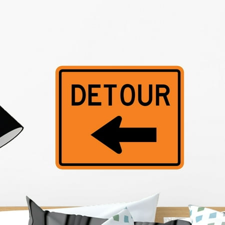 Wallmonkeys WM14246 Detour to Left Arrow Sign Peel and Stick Wall Decals (18 in W x 15 in H), Small