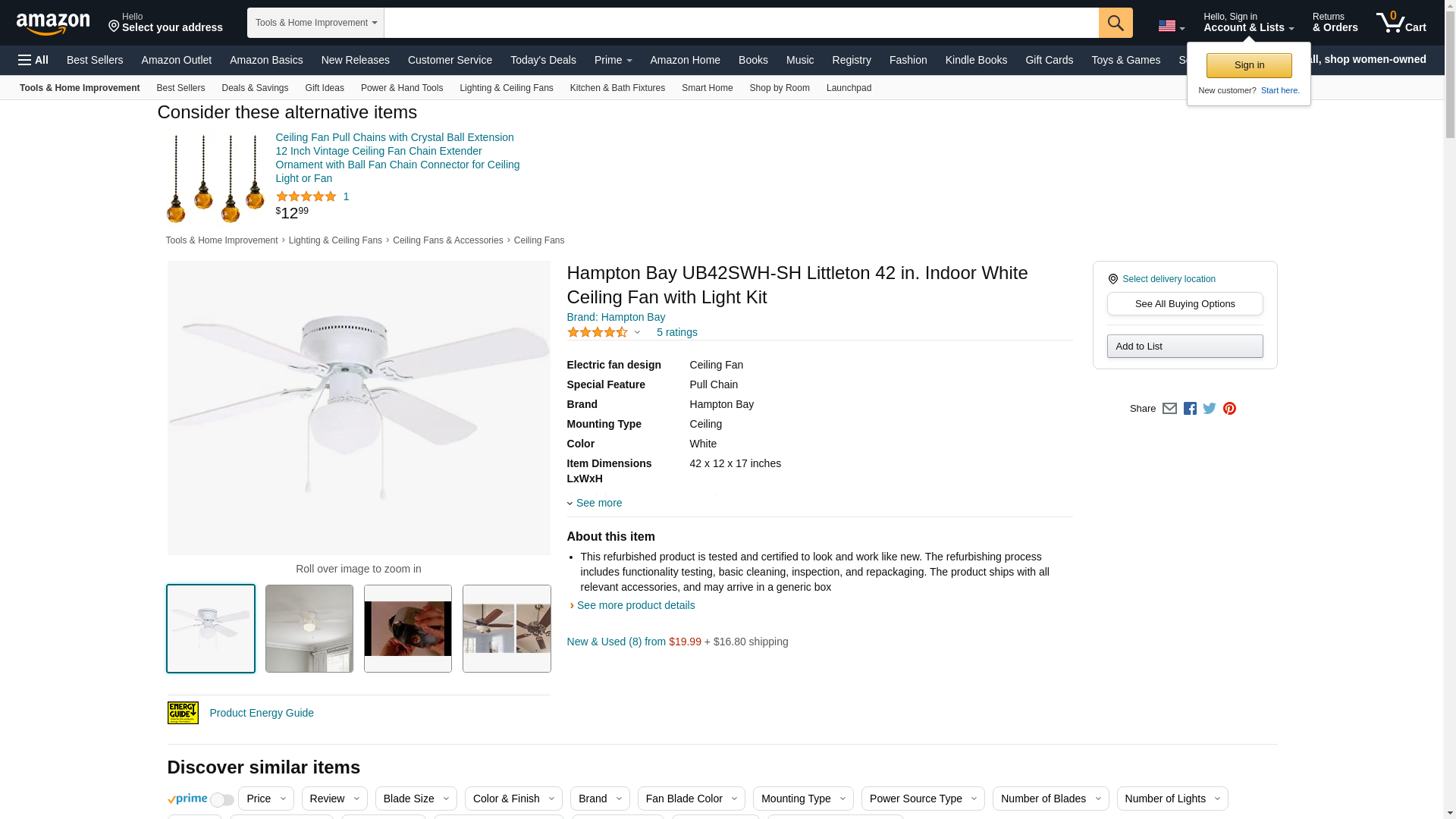 Hampton Bay UB42SWH-SH Littleton 42 in. Indoor White Ceiling Fan with Light Kit