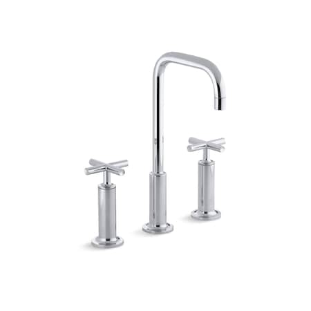 KOHLER K-14408-3-CP Purist Widespread Lavatory Goose Neck Faucet with Cross Handles, Polished Chrome