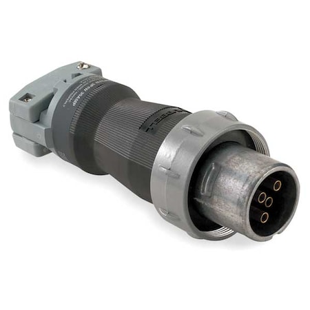 'Type 4X Pin and Sleeve Plug, Number of Poles 3, Number of Wires 4, Amps 100, Color Gray, HP -, Voltage 600VAC/250VDC, Phase 3, Body Material Valox 357 Housing and Aluminum Shroud, Features Watertight and Abuse Resistant, Ground Through Dedicated Ground Pin, Standards UL Listed 1682, UL50 and UL1010, CSA Certified to CSA C22.2 No. 182.1, No.94 and No. 159'