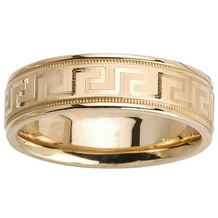 "18K Gold Designer Greek Key Men's Wedding Band (6.5mm) Size-10"