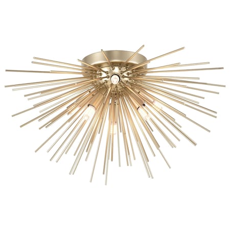 The Savannah 6 Light Flush Mount Light in Gold Leaf FInish will brighten up rooms and moods. This bold, brilliant, and bright luminaire is bursting with warmth and drama perfect for upgrading the look of your living room, home office, entryway or bedroom. Perfectly sized for low ceilings, this piece will make a statement without overwhelming the space.
