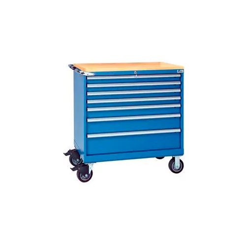 Lista® 7 Drawer 40-1/4" Shallow Depth Mobile Cabinet w/Butcher Top-Bright Blue, Keyed Alike