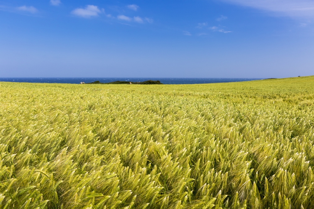 Posterazzi DPI12282562 Barley Field with Blue Sky & The Sea in The Distance - Brittany France Poster Print - 19 x 12 in.