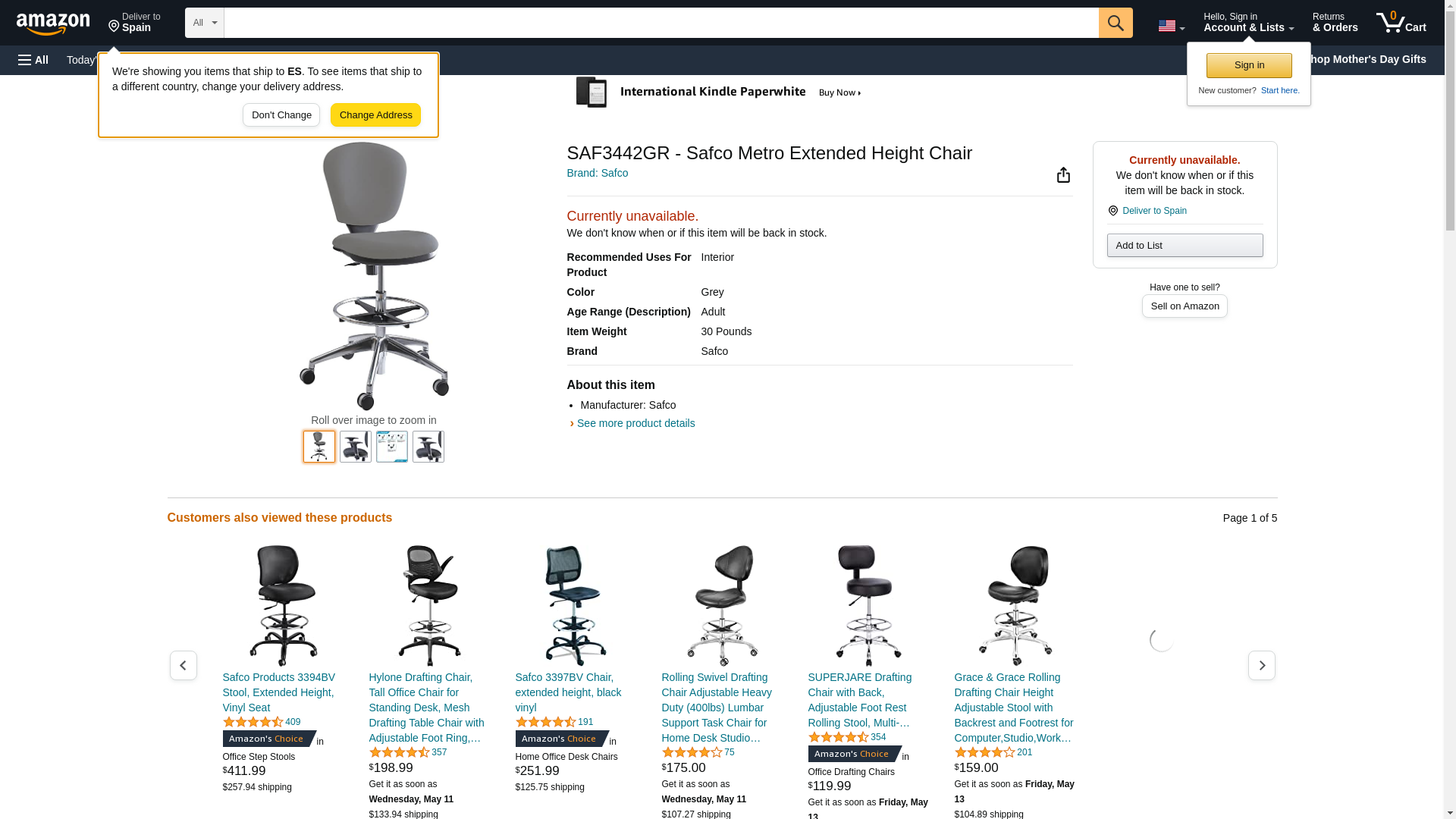 Safco Metro Collection Extended Height Chair- SAF3442GR