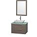 Wyndham Collection Amare 30 inch Single Bathroom Vanity in Grey Oak with Green Glass Top with Carrera Marble Sink, and 24 inch Mirror