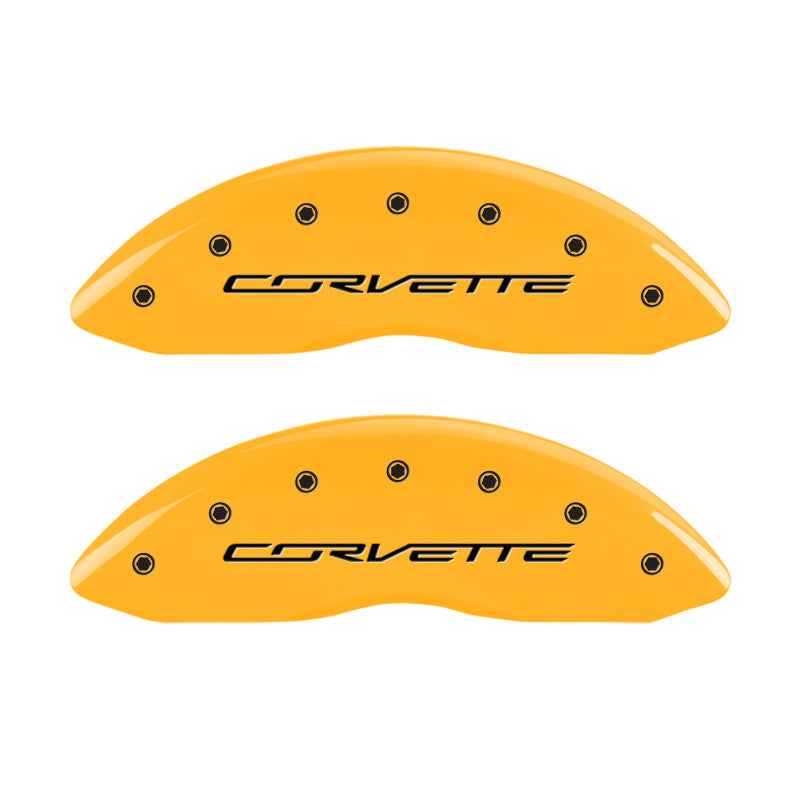 MGP 4 Caliper Covers Engraved Front & Rear C7/Corvette Yellow finish black ch - 13009SCV7YL