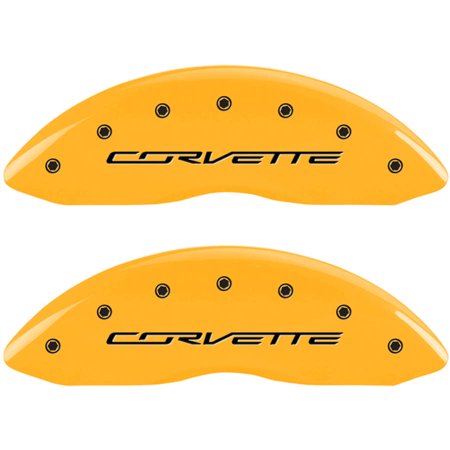 MGP Caliper Covers 13009SCV7YL Caliper Cover, Set of 4 (Yellow Engraved Front and Rear: C7/Corvette Powder Coat Finish Black Characters)