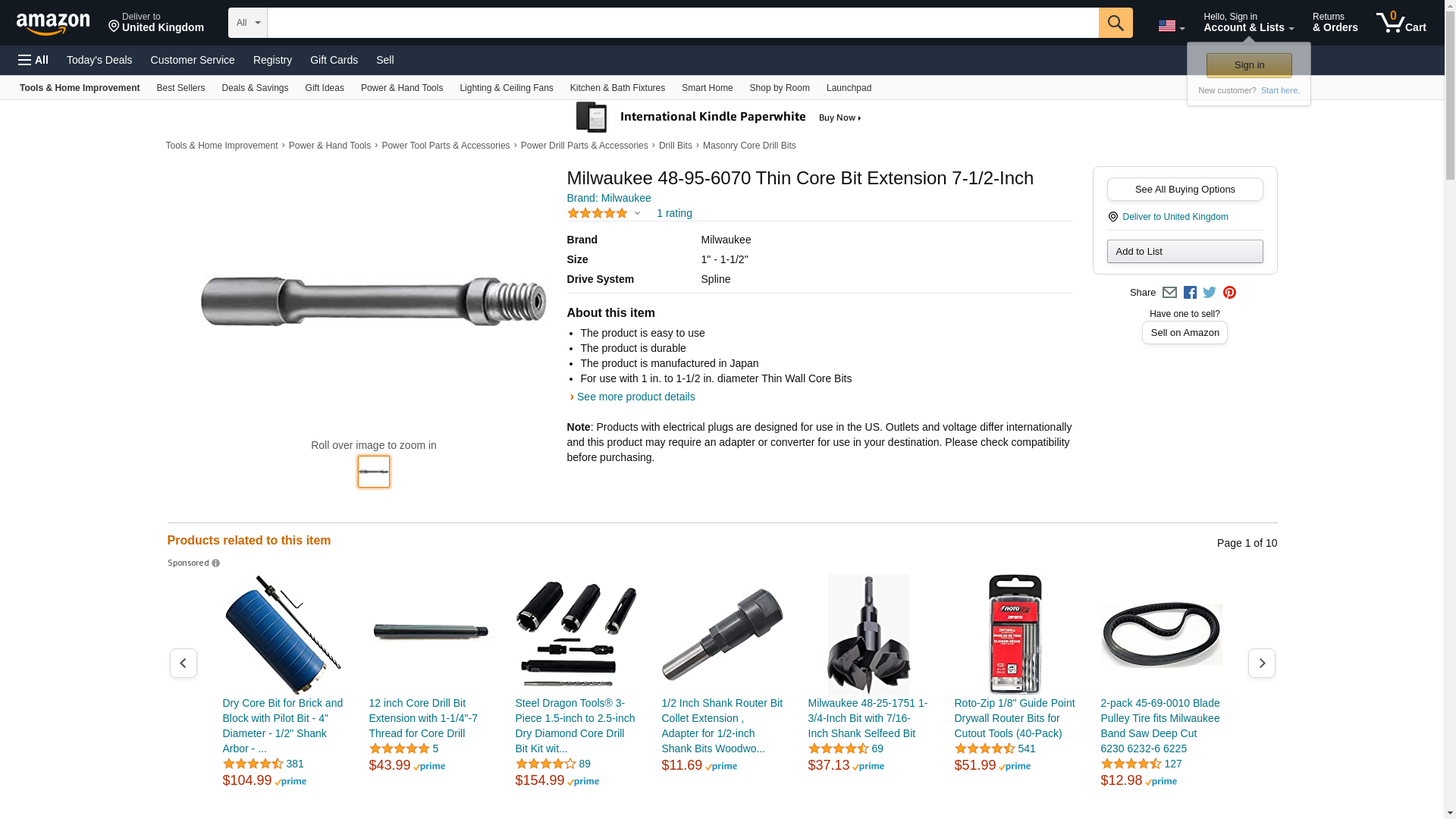 Milwaukee 48-95-6070 Thin Core Bit Extension 7-1/2-Inch