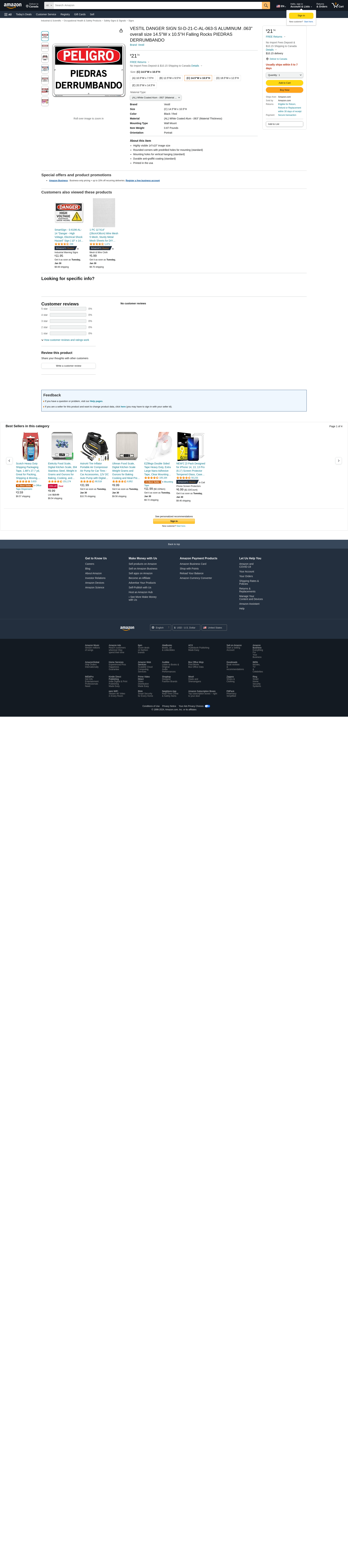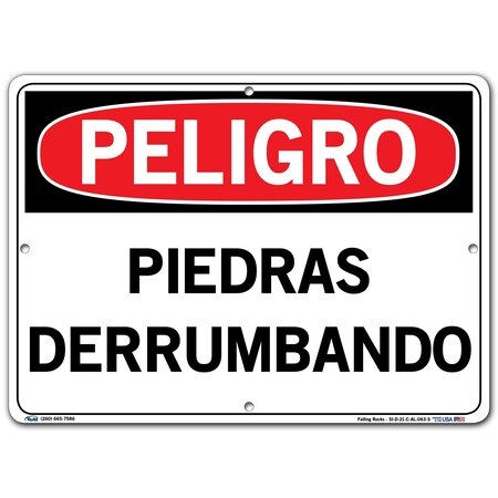 VESTIL DANGER SIGN SI-D-21-C-AL-063-S ALUMINUM .063" overall size 14.5"W x 10.5"H Falling Rocks PIEDRAS DERRUMBANDO