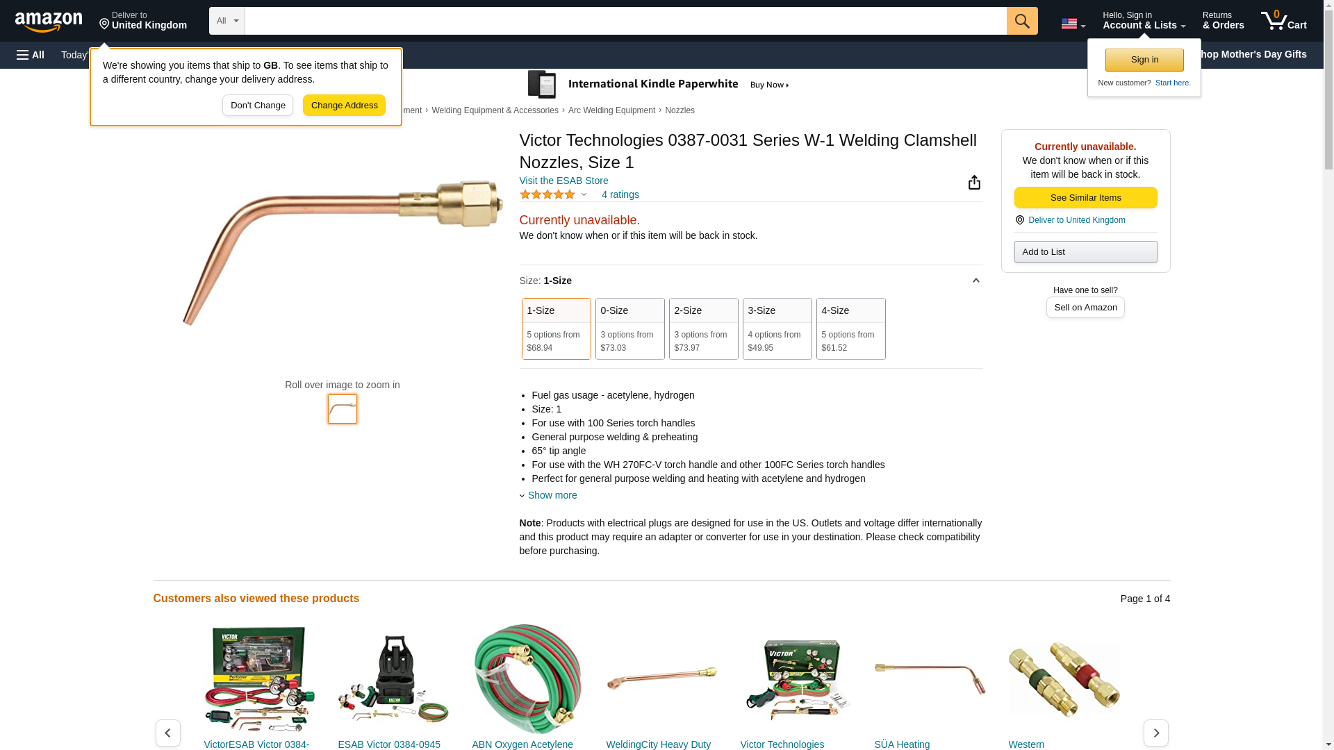 Victor Professional Welding Nozzle, Type W-1, Size: 1, Clamshell 0387-0031 VIC0387-0031 - Gas and Supply