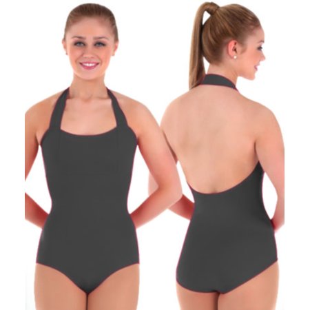 Halter leotard features a memory stretch shelf bra lining in all colors. 100% Nylon front moisture control liners that wick moisture away from the body for a cool comfortable fit. Material: Nylon.