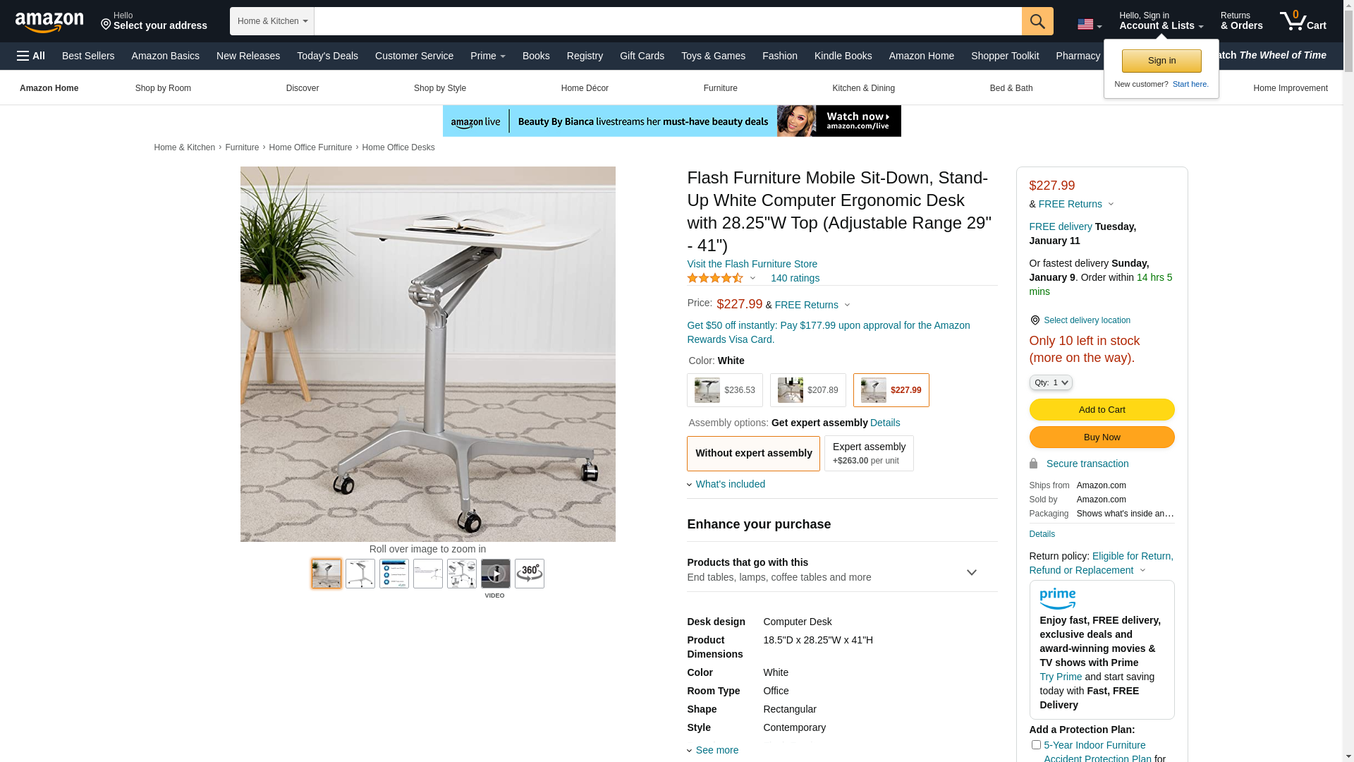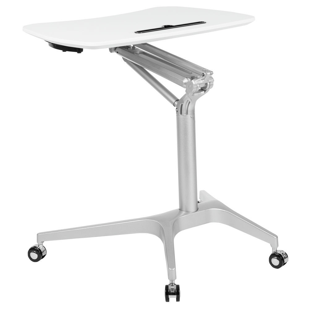 Flash Furniture Gia Mobile Sit-Down, Stand-Up White Computer Ergonomic Desk with 28.25"W Top (Adjustable Range 29" - 41")