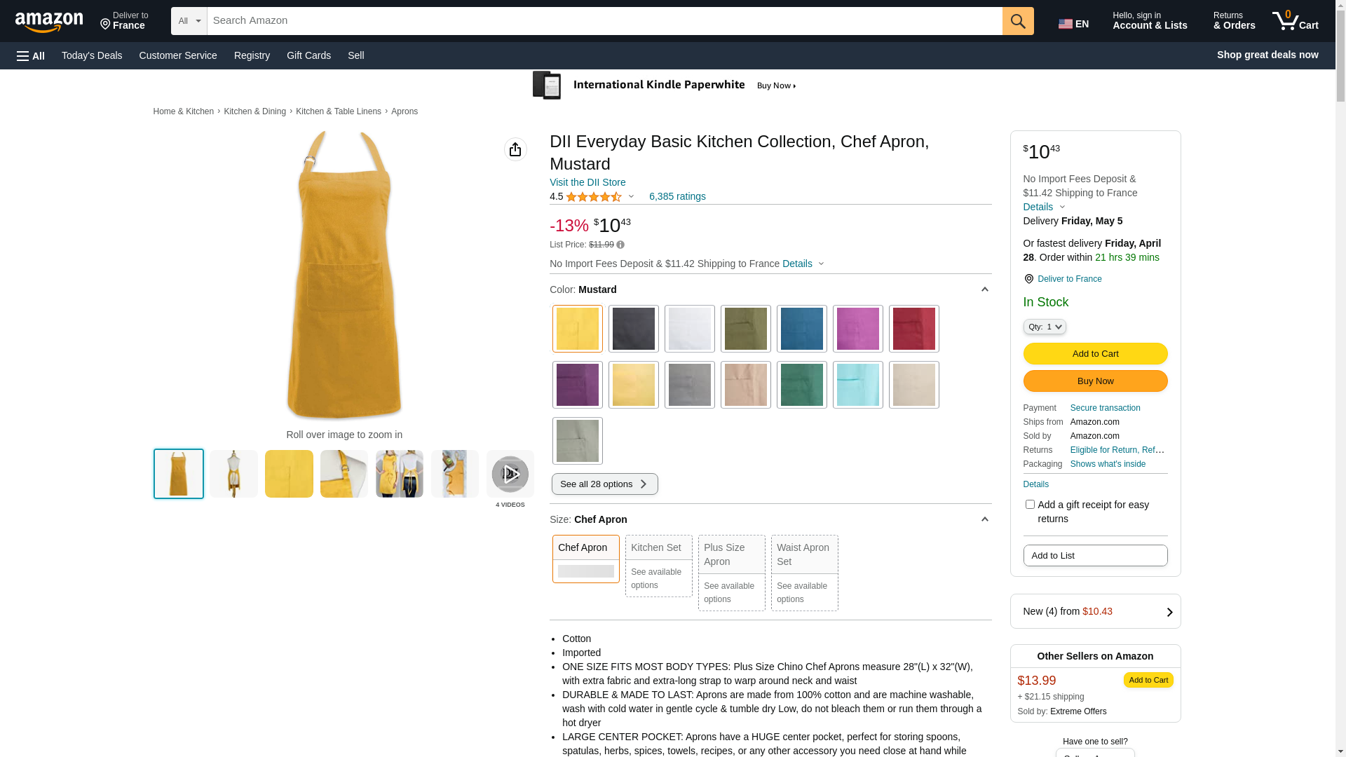 To view our entire selection of options search: DII Aprons or visit our brand page by clicking the DII link at the top of the page for a full range of products. </p> <b>Our Aprons Products Include: </b> <ul> <li>Chino Chef Apron </li> <li>Skirted Aprons </li><li>Holiday Apron for Valentine?s Day, St. Patrick?s Day, Halloween, Thanksgivings and Christmas </li> <li>Printed Aprons </li> <li>French Stripe Aprons Skirted Aprons </li> <li>Denim Apron </li> <li>Gourmet Aprons </li> <li>Damask Aprons </li> <li>Plus Size Extra-Large Apron </li> <li>Bistro Aprons </li> <li>Waist Half Aprons</li> </ul> <p></p> </div> <style type="text/css"> #productDescription { color: #333333; word-wrap: break-word; font-size: small; line-height: initial; margin: 0.5em 0px 0em 25px; } #productDescription_feature_div > h2.default { color: #CC6600; font-size: medium; margin: 0 0 0.25em; } #productDescription_feature_div > h2.books { color:#333 !important; font-size:21px !important; line-height: 1.3; padding-bottom: 4px; font-weight: normal; margin: 0px; } #productDescription_feature_div > h2.softlines { color:#333 !important; font-size:21px !important; line-height: 1.3; padding-bottom: 4px; font-weight: bold; margin: 0px; } #productDescription > p, #productDescription > div, #productDescription > table { margin: 0 0 1em 0; } #productDescription p { margin: 0em 0 1em 1em; } #productDescription h3 { font-weight: normal; color: #333333; font-size: 1.23em; clear: left; margin: 0.75em 0px 0.375em -15px; } #productDescription table { border-collapse: inherit !important; margin-bottom: 0; } #productDescription table img { max-width: inherit !important; } #productDescription table td { font-size: small; vertical-align: inherit !important; } #productDescription ul li { margin: 0 0 0 20px; } #productDescription ul li ul { list-style-type: disc !important; margin-left: 20px !important; } #productDescription ul ul li { list-style-type: disc !important; margin-left: 20px !important; } #productDescription > ul ul li { list-style-type: disc !important; } #productDescription ul li ul li { margin: 0 0 0 20px; } #productDescription .aplus p { margin: 0 0 1em 0; } #productDescription small { font-size: smaller; } #productDescription.prodDescWidth { max-width: 1000px } </style> <!-- Used to set table width because AUI is overriding the width attribute of the tables coming in description --> <script type="text/javascript"> P.when('jQuery').execute(function($){ $("#productDescription table").each(function() { var width = $(this).attr('width'); if (width) width += 'px'; else width = 'auto'; $(this).css('width', width); var padding = $(this).attr('cellpadding'); if (padding) padding += 'px'; else padding = '0px'; $(this).css('padding', padding); }); }); </script> <style> #productDescription h3 { margin: 0.75em 0px 0.375em -1px; } </style> </div> </div> </div> </div> <div id="dpx-btf-renewed-program-description_feature_div"> <div id="renewedProgramDescriptionBtf_feature_div" class="celwidget" data-feature-name="renewedProgramDescriptionBtf" data-cel-widget="renewedProgramDescriptionBtf_feature_div"> </div></div> <div id="product-details-grid_feature_div"> <div id="product-details-grid_feature_div"> <div id="product-details-grid_feature_div"> <a id="productDetails" name="productDetails"></a> <div id="productDetails_feature_div" class="celwidget" data-feature-name="productDetails" data-cel-widget="productDetails_feature_div"> <hr class="a-divider-normal"> <div style="overflow:hidden;"> <div id="prodDetails" class="a-section"> <h2> Product information </h2> <span> Size:<strong>Chef Apron</strong> | Color:<strong>Mustard</strong> </span> <div class="a-row a-spacing-top-base"> <div class="a-column a-span6"> <div class="a-row a-spacing-base"> <div class="a-section table-padding"> <table id="productDetails_detailBullets_sections1" class="a-keyvalue prodDetTable" role="presentation"> <tbody><tr> <th class="a-color-secondary a-size-base prodDetSectionEntry"> Product Dimensions </th> <td class="a-size-base"> 32 x 28 x 0.25 inches </td>