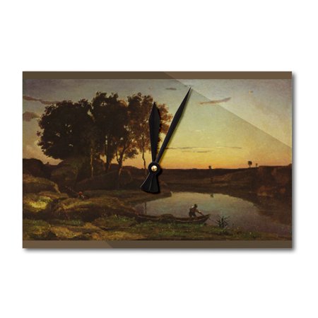 Landscape with Lake and Boatman - Masterpiece Classic - Artist: Jean-Baptiste-Camille Corot c. 1839 (Acrylic Wall Clock)