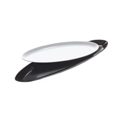 Display your culinary creations on this 21" x 6.5" oval platter from G.E.T. Enterprises. It is part of the Siciliano Collection and is made from break‐resistant melamine material. This black platter is 100% BPA free and commercial dishwasher safe for easy clean up. Perfect for restaurants cafes or outdoor events!<br>Model #: ML‐253‐BOval ShapeBreak‐Resistant100% BPA FreeCommercial Dishwasher SafePlease note: G.E.T. products are break‐resistant ‐ not unbreakable. Any product that becomes cracked or damaged should be taken out of service immediately so as not to incur any operational liability#7 on the recycle chart