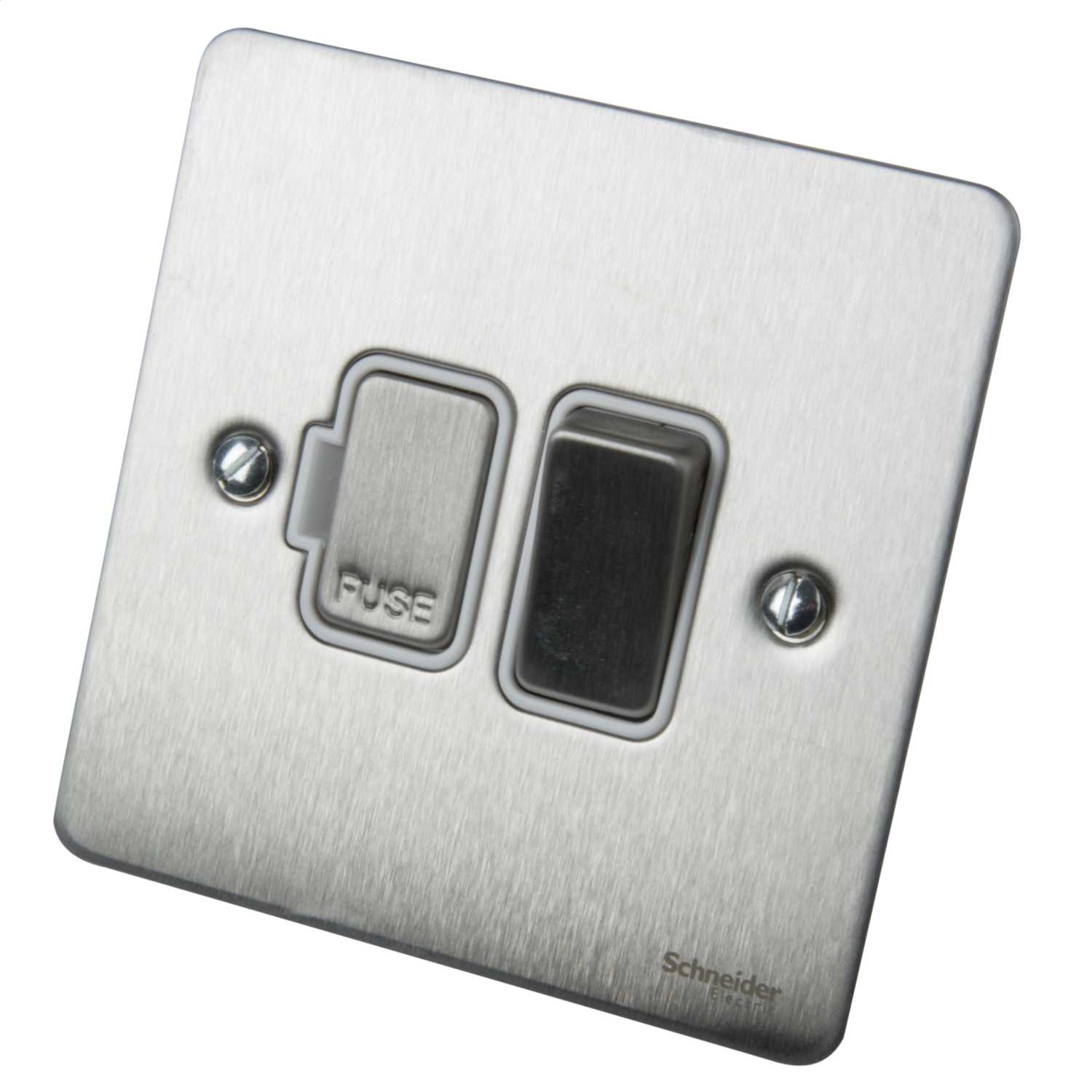 Schneider GET Ultimate Flat Plate 13A DP Switched Fused Spur White Insert Stainless Steel (GU5210WSS) | CEF