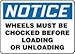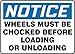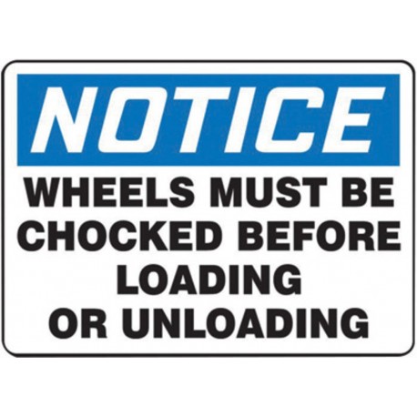 Accuform Signs(R) 7" X 10" Blue, Black And White Plastic Value Chock Wheels Sign "Notice Wheels Must Be Chocked Before Loading Or Unloading"