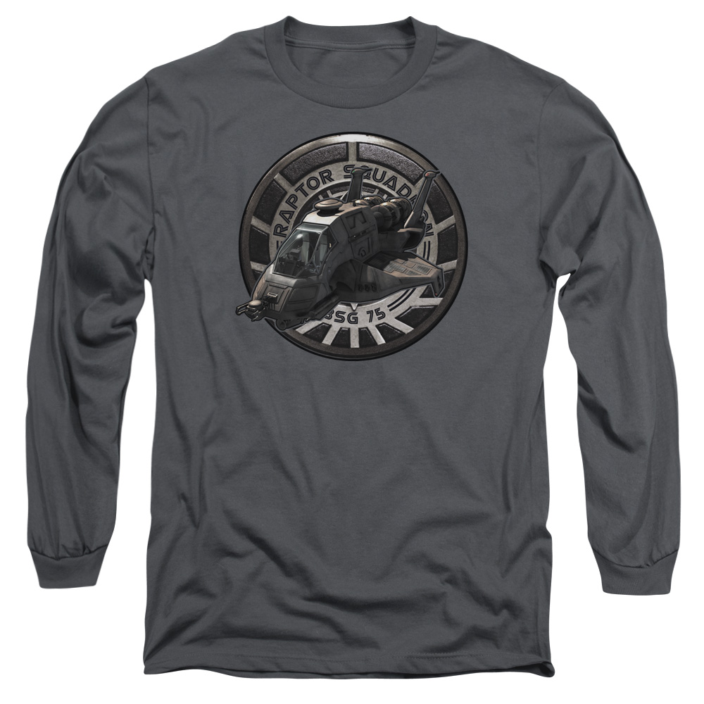 Trevco BSG111-AL-4 BSG & Raptor Squadron Long Sleeve Cotton Adult 18-1 T-Shirt, Charcoal - Extra Large