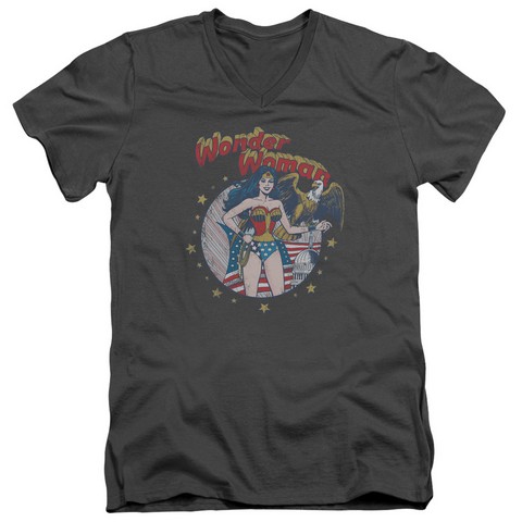 Trevco Jla-At Your Service Short Sleeve Adult V-Neck 30-1 Tee, Charcoal - Large
