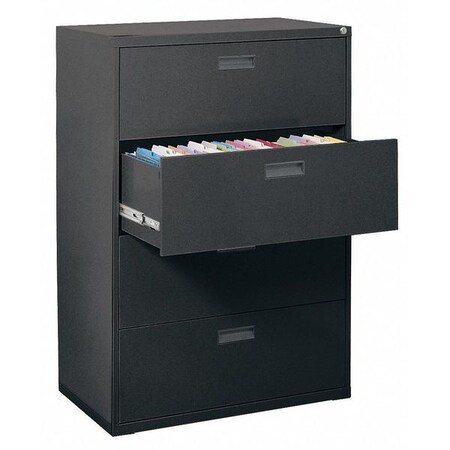' Lateral File Cabinet, Width 36 In., Depth 18 In., Height 52-5/8 In., Color Black, Powder Coat Paint Finish, Number of Drawers or Bins 4, Includes Antitip Drawer Interlock System '