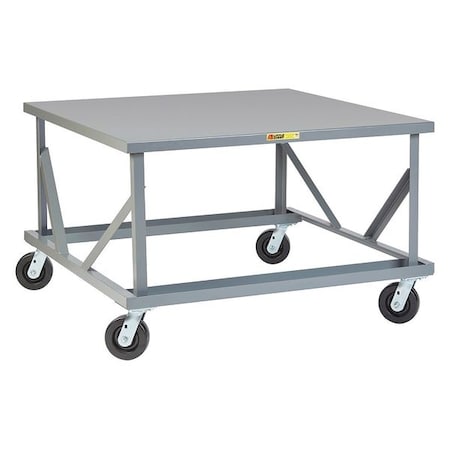 All-welded pallet dolly with raised 30" deck height to lessen bending and back strain. 6" swivel casters with phenolic wheels. All-welded construction with durable gray powder coated finish.<br><br>