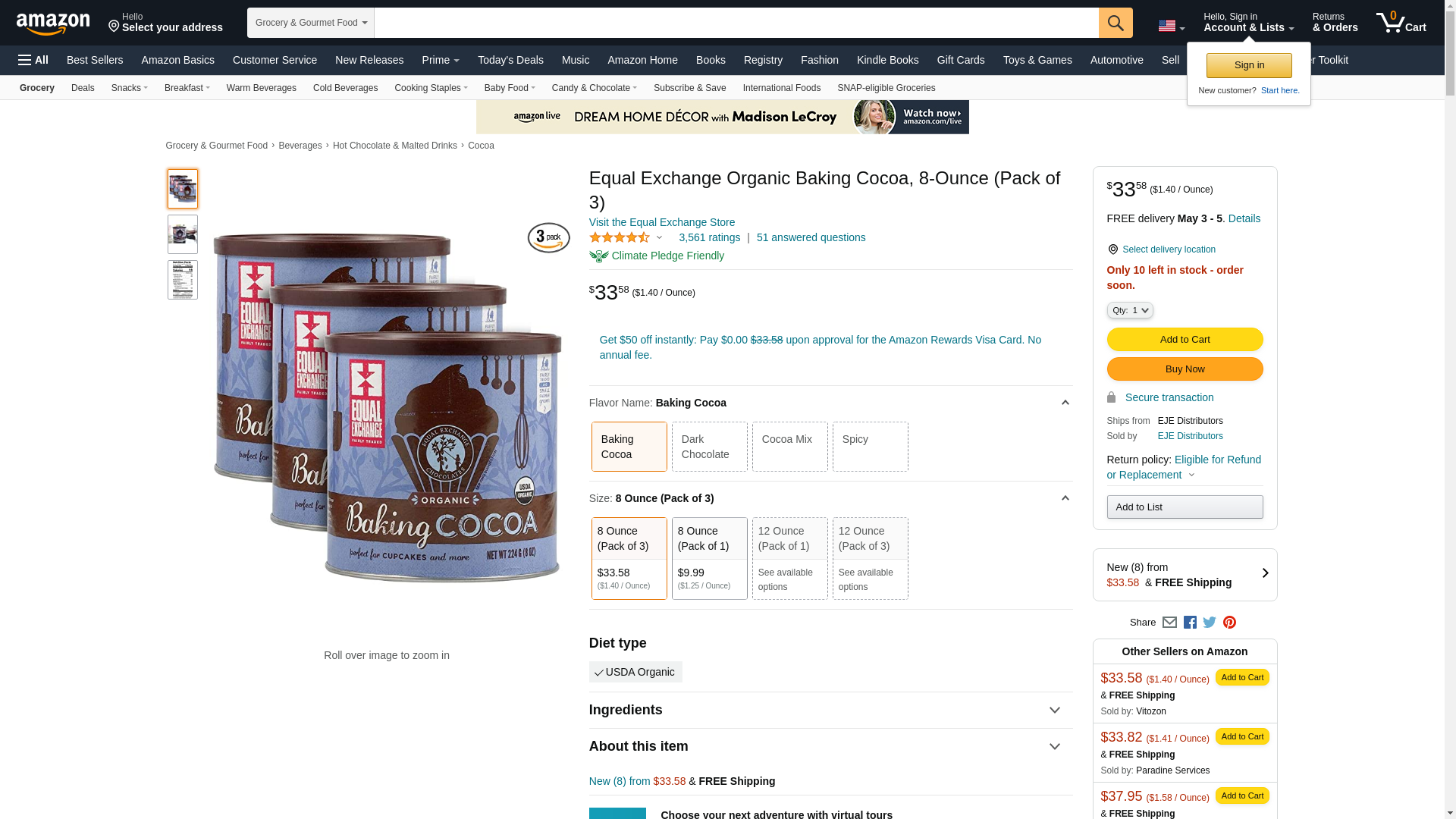 Equal Exchange Organic Baking Cocoa, 8-Ounce (Pack of 3): Maxedbuy.com