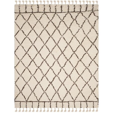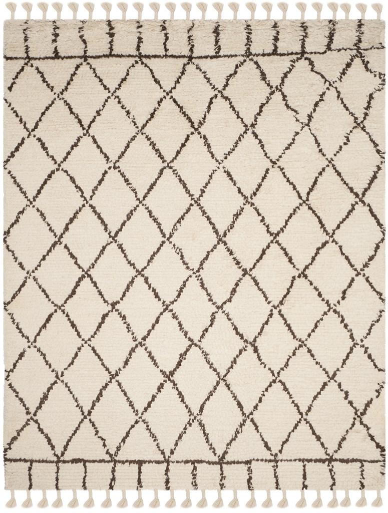 SAFAVIEH Casablanca Collection Area Rug - 9' x 12', Ivory & Brown, Handmade Moroccan Trellis Tassel New Zealand Wool, 1-inch Thick Ideal for High Traffic Areas in Living Room, Bedroom (CSB725A)