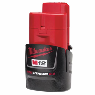 The Milwaukee 48-11-2420 is a M12 REDLITHIUM 2.0 Compact Battery Pack. This newest Milwaukee 12V Lithium-Ion Battery works on the M12 Cordless Tool System, and has 2.0 AMP hours of run-time. Milwaukee?s M12 REDLITHIUM 2.0 provides up to 2X more run-time,