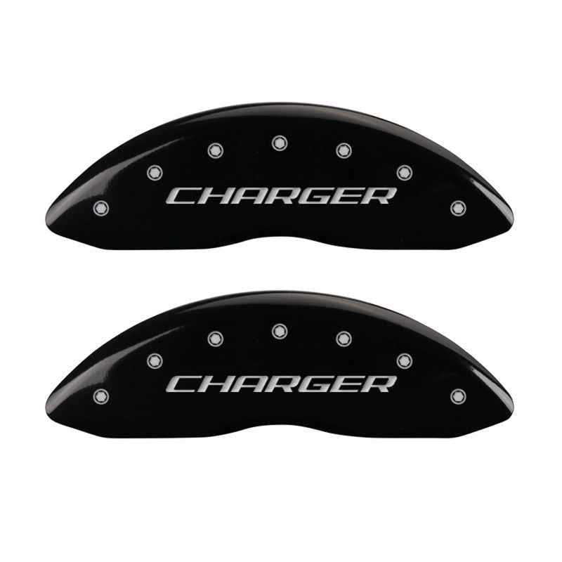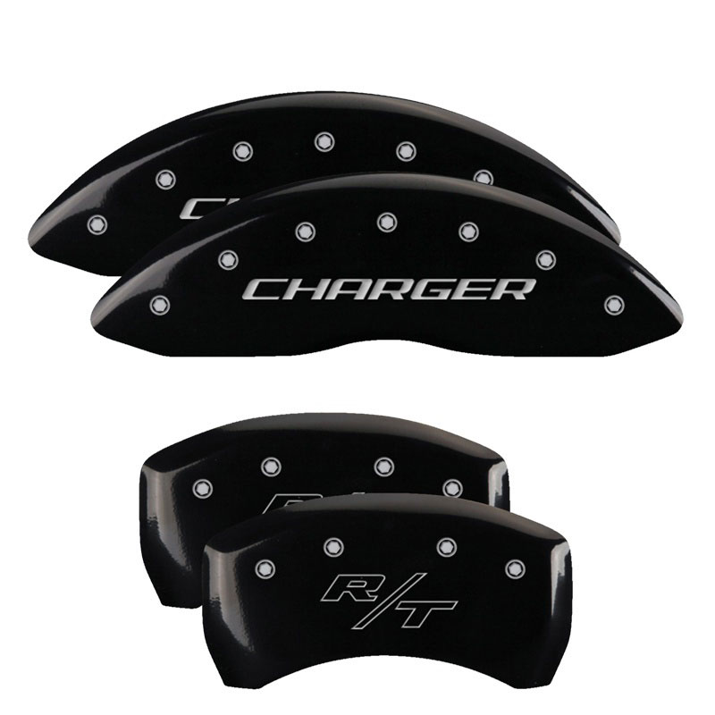 Buy MGP 4 Caliper Covers Engraved Front Charger Engraved Rear RT Black finish silver ch - 12001SCHRBK for 263.92 at Armageddon Turbo & Performance