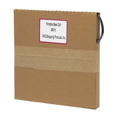 Pac Strapping Portable Steel Strapping Coil w/Self Dispensing Box, 3/4"W x 300'L x 0.020" Thick