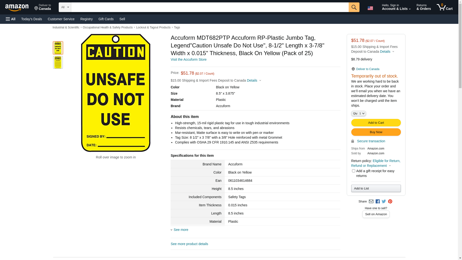 Order MDT682PTP by Accuform RP-Plastic Tag "Caution Unsafe Do Not Use" - US Mega Store