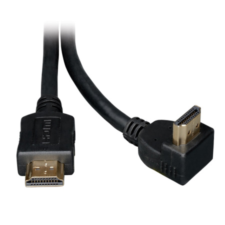 Tripp Lite's 6-ft. High Speed HDMI (High Definition Multimedia Interface ) cable with right-angle connector allows interconnection between digital display devices and digital source devices, where space constraints are an issue. Supports iPad2 Video Mirroring when used with Apple Digital AV Adapter. HDMI assures that the best audio/video signal is always sent from the source (HDTV signal, Blu-Ray Player) to the display (Projection Television, LCD, Plasma, etc.). It does this by allowing uncompressed video and multi-channel audio data to be input to the display device through one single cable. An HDMI connection allows input at high rates of speed, up to 10.2 Gbps.</p>